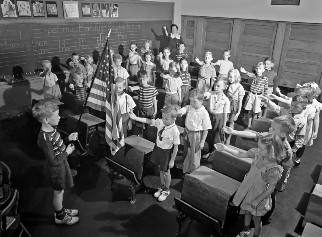 Originally called the Bellamy Salute, it was not until the 1950s that Eisenhower had “one nation, under God” added, in a noble attempt to keep God in the school system. In 1963, approximately 100 years after the start of government schools, the Supreme Court ruled mandatory Bible reading and praying unconstitutional. Since then, the moral and educational failures of the government schools have only snowballed into their current, abysmal state.